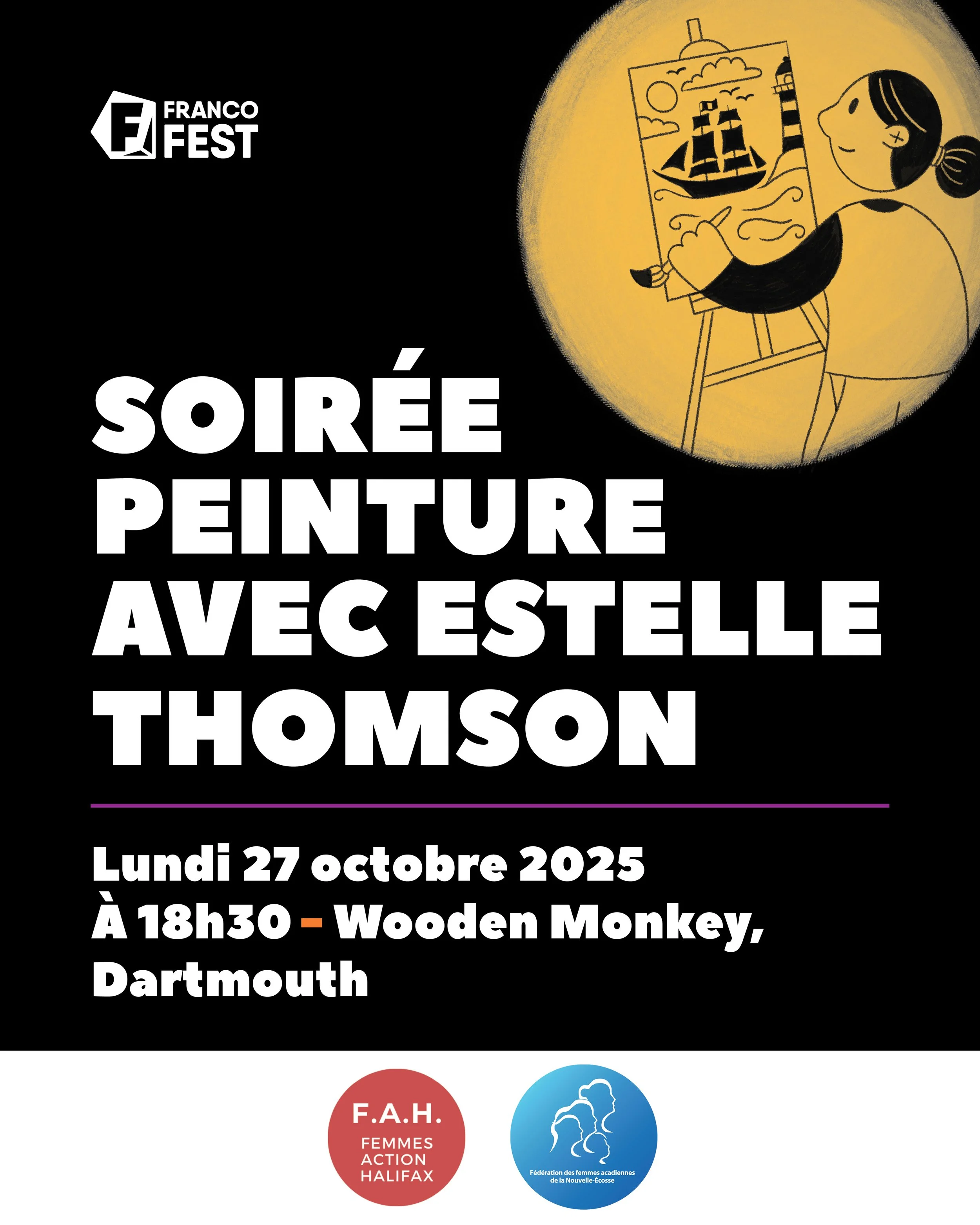 Francofest invites you to a unique painting workshop led by the talented Estelle Thomson on Monday, October 27, 2025, starting at 6 p.m. at Wooden Monkey, Dartmouth.